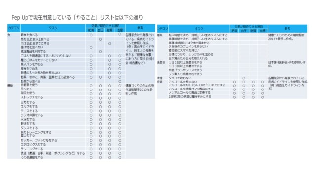 日々の記録の中にある「やることリスト」も設定してみてはいかがでしょうか。例えば「速く歩く」「階段を使う」「野菜から食べる」など自分にあった簡単な健康行動を選んでみましょう!